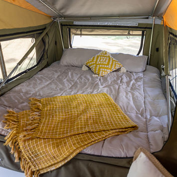 The perfect adventure companion with a MDC Explorer Forward Fold Designed for comfort and convenience, this immaculate 4-5 berth features a spacious lounge that easily converts into a cozy bed. Equipped with a sturdy boat rack and a dual zone fridge freezer, it's ideal for those who love to explore the great outdoors. don't miss out on the opportunity to hire a reliable and well-maintained camper for your next journey!